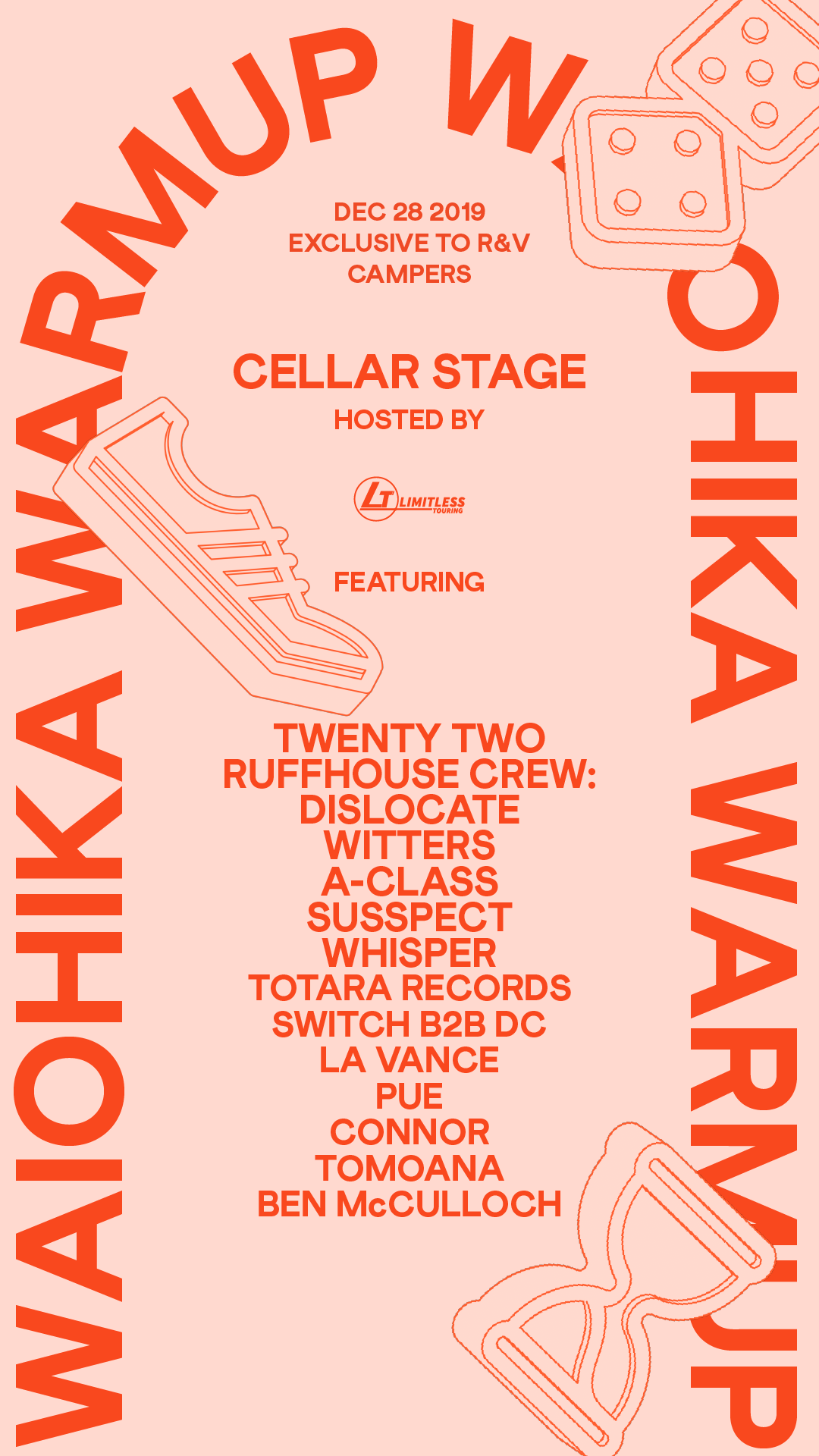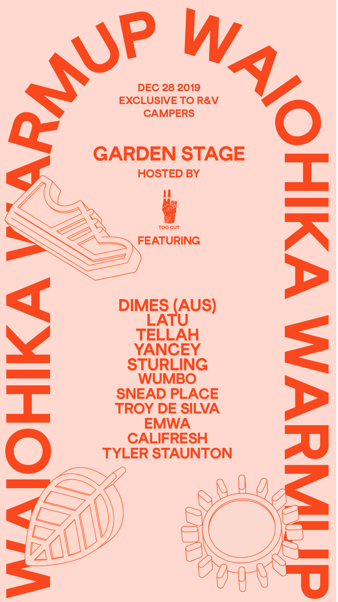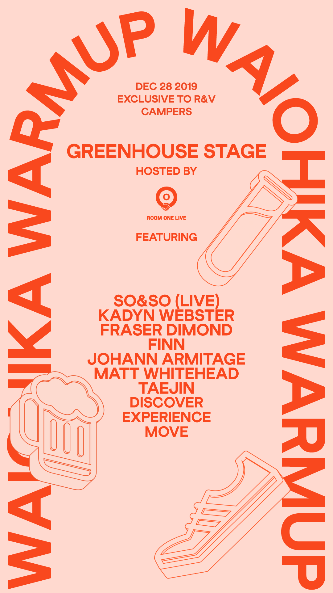 Exclusive to R&V onsite campers only, the Waiohika Warmup is a chance for festival goers to get loose and limber on the night of December 28. 3 stages will be in full flight which include Greenhouse stage, hosted by Room One Live, Garden Stage, hosted by Too Cut and Cellar Stage, hosted by Limitless Touring. Our exclusive party for 14,500 campers, will get you primed for the dance marathon ahead.